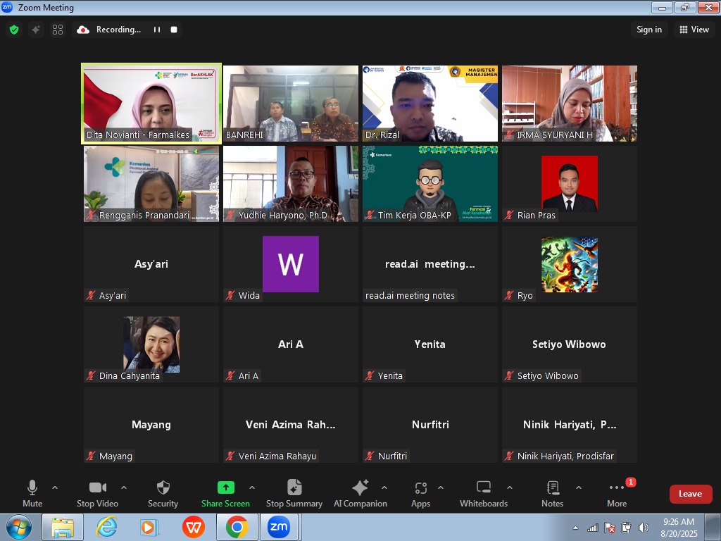 Jakarta — Badan Nasional Rempah dan Herbal Indonesia (Banrehi) melanjutkan safari memperkenalkan naskah akademik pembentukannya kepada berbagai instansi negara. Hari ini, Rabu, 20 Agustus 2025, Banrehi menggelar audiensi dengan Kementerian Kesehatan Republik Indonesia, yang diwakili oleh Direktur Produksi dan Distribusi Farmasi (Prodisfar), Dita Novianti Argadiredja, beserta jajaran timnya. Pertemuan dilaksanakan secara daring melalui aplikasi Zoom dan berlangsung dalam suasana aktif serta konstruktif.